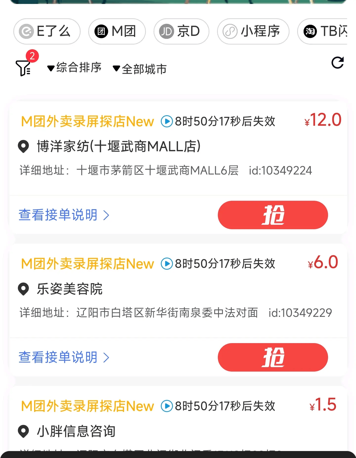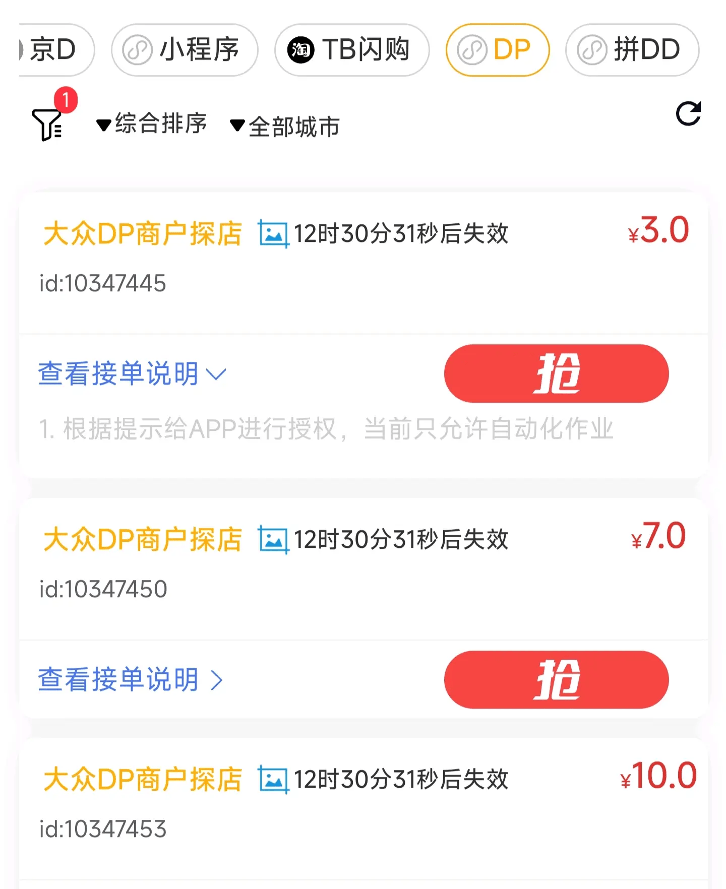 项目说明: 通过任务助手接任务,浏览指定商家或者商品