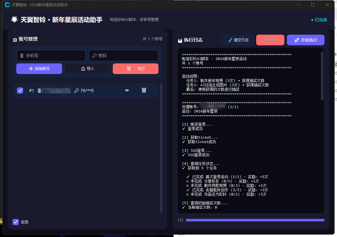 在软件里面输入手机号和密码,点开始运行即可开启全自动挂机
