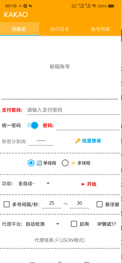 协议可以无限添加账号,同时跑项目