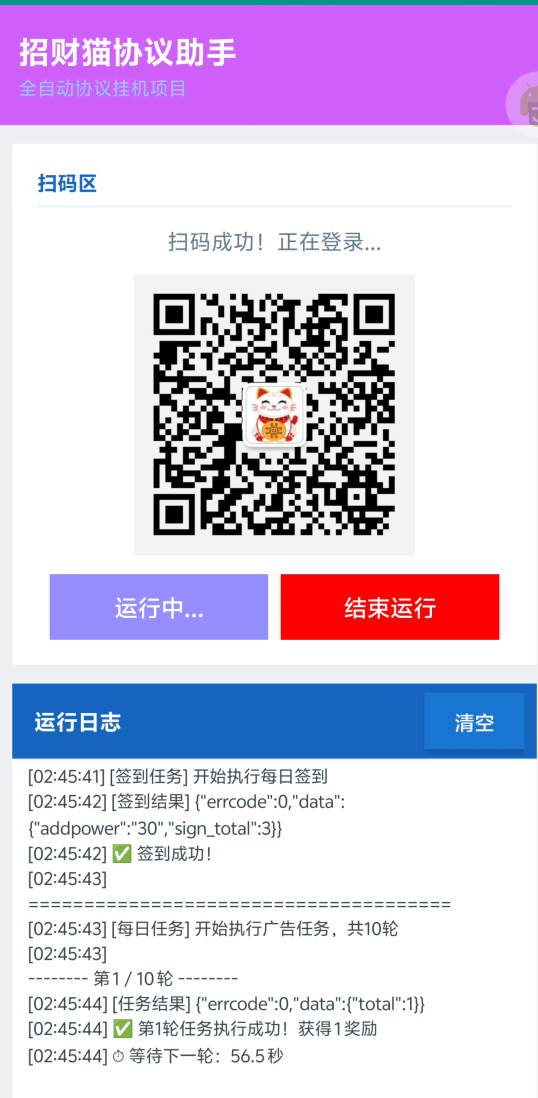 协议优点:支持无限添加账号,扫码2分钟完成任务